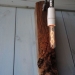 Hanglamp 'Spijker' van doorleeft sloophout met porseleinen fitting.